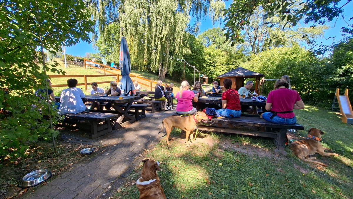 Gestartet wurde auf dem Festplatz in Gondsroth, von dem aus wir mit 18 Hunden und 25 Personen hinauf zur Edelweißhütte spazierten.