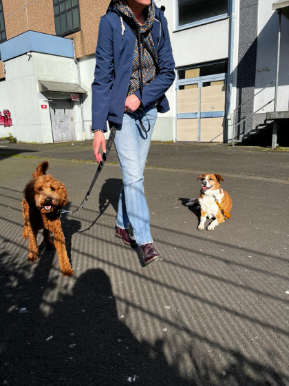 Wir starteten auf der Wiese im Uferweg und näherten uns dem Marktgeschehen langsam über den ehemaligen Joh-Parkplatz und die Grimmelshausen Buchhandlung. Während einige Hunde mit ihren Zweibeinern zum Abschluss über die „Marktmeile“ flanierten, blieben andere in ruhigerer Entfernung zum Trubel. So konnte jedes Hund-Mensch-Team bestmöglich trainieren und neue Erfahrungen sammeln. Ihr habt das klasse gemacht! 😊