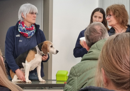 Am Dienstag, den 23. April 2024, luden wir unsere TeilnehmerInnen zum Erste-Hilfe-Kurs Hund in die Tierarztpraxis „Am Spitalacker“ in Gelnhausen ein. Unter der Leitung von Frau Dr. Karin Pantel und ihrem Team fand ein ca. 2,5-stündiger Kurs rund um die Notfälle bei unseren Vierbeinern statt.