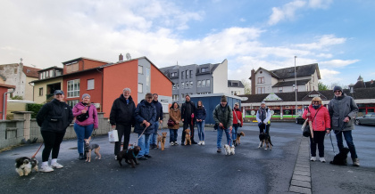 So auch zuletzt am Mittwoch, den 24. April 2024. Gegen 18 Uhr starteten wir am Triangulum in Gelnhausen. Unser Weg führte uns vorbei am Bahnhof, durch die Grimmelshausen-Buchhandlung bis hin zur Müllerwiese. Hier durften die Hundekinder eine Runde spielen, bevor wir einen kurzen Stopp in der Eisdiele einlegten. Auf dem Rückweg führten wir die Welpen durch die „Joh-Passage“ zurück zum Parkplatz. Unsere ca. einstündige Runde wurde von den teilnehmenden Hund-Mensch-Teams super gemeistert.